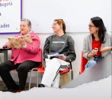 La senadora Clara López departiendo con algunas integrantes del Colectivo ‘El mal rebaño’ en la penitenciaria El Buen Pastor de Bogotá.