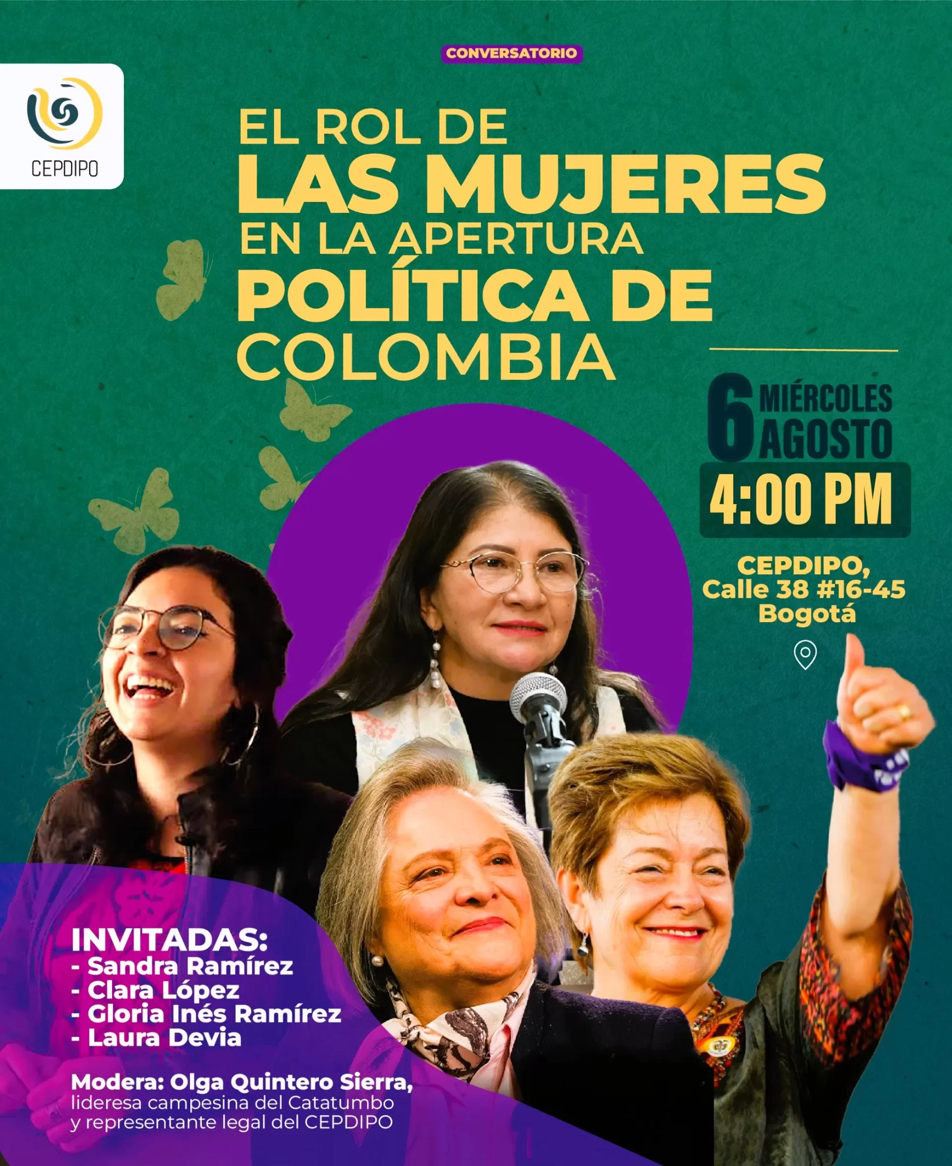 En Colombia aún falta mucho por avanzar en materia de reconocimiento de derechos femeninos, fue una de las reflexiones en que se hizo hincapié por parte de las participantes en el foro “El rol de las mujeres en la apertura política de Colombia”, organizado por el Centro de Pensamiento y Diálogo Político (CEPDIPO) en la tarde del pasado miércoles 6 de agosto. En este encuentro participaron la senadora Clara López Obregón, la exministra Gloria Inés Ramírez, la congresista Sandra Ramírez y la activista del partido Comunes, Laura Devia, quienes abordaron con profundidad los retos presentes y futuros en torno a la participación política de la mujer en el país.