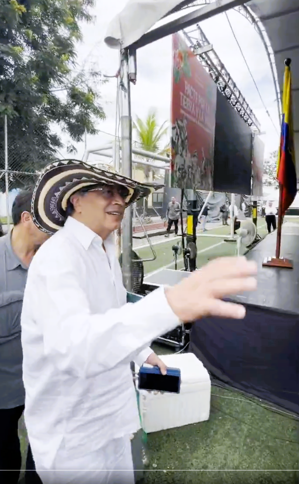 El presidente Gustavo Petro a su arribo a la población de Chicoral para suscribir el Pacto por la Tierra y la Vida.