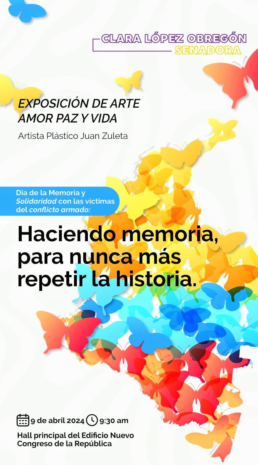 Para conmemorar el Día Nacional de la Memoria y Solidaridad con las Víctimas del inveterado conflicto armado colombiano este martes 9 de abril, la senadora del Pacto Histórico, Clara López Obregón, organizó una exposición artística con obras del escultor cesarense Juan Zuleta.