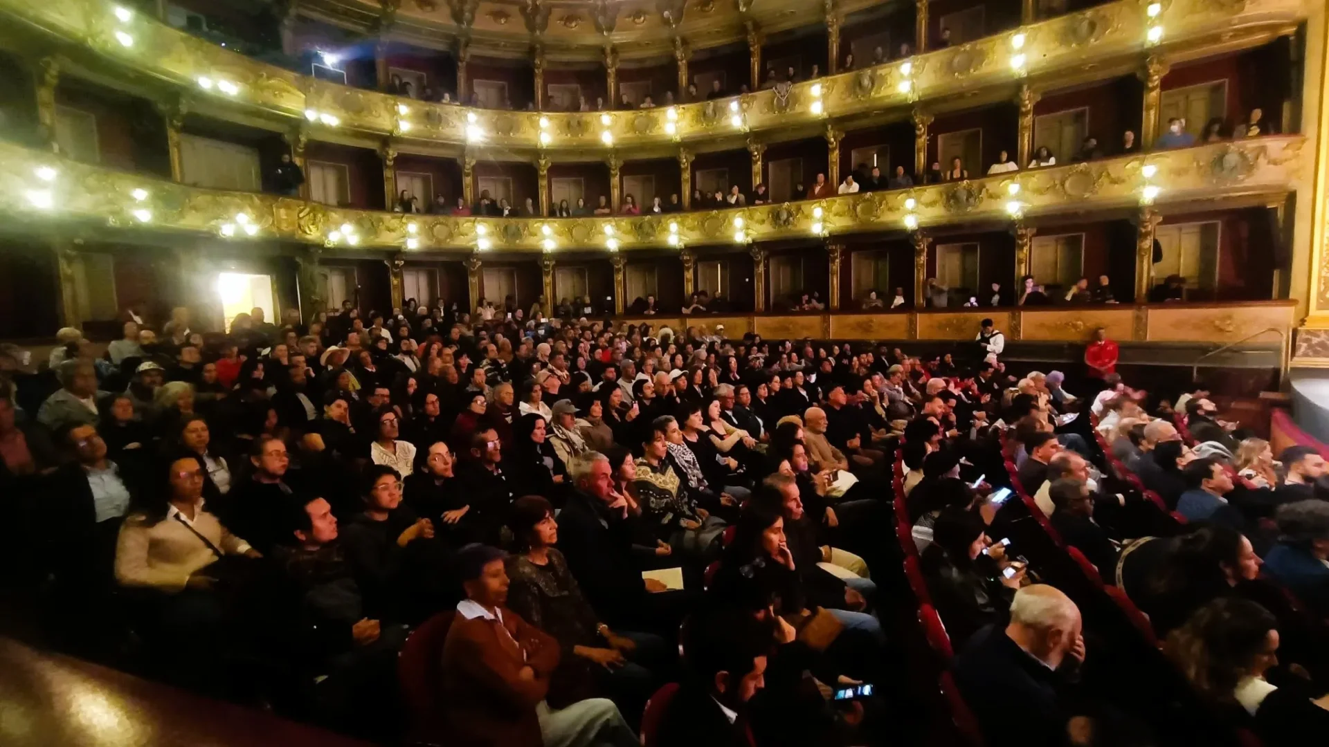 Aspecto del nutrido acto de cierre con amplia participación ciudadana de la Cumbre ‘Nuestra América’ en el Teatro Colón de Bogotá en la noche del sábado 24 de enero.