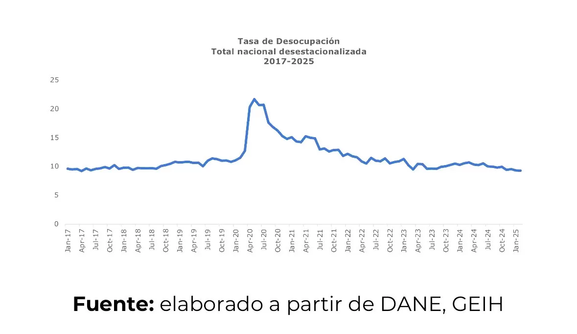 Según el último informe del Departamento Administrativo Nacional de Estadística (DANE), se reporta una reducción de 1,3 puntos en la tasa de desocupación frente a febrero de 2024 y, comparado con las cifras de los últimos años, no se veía una cifra tan baja para ese mes desde 2015.