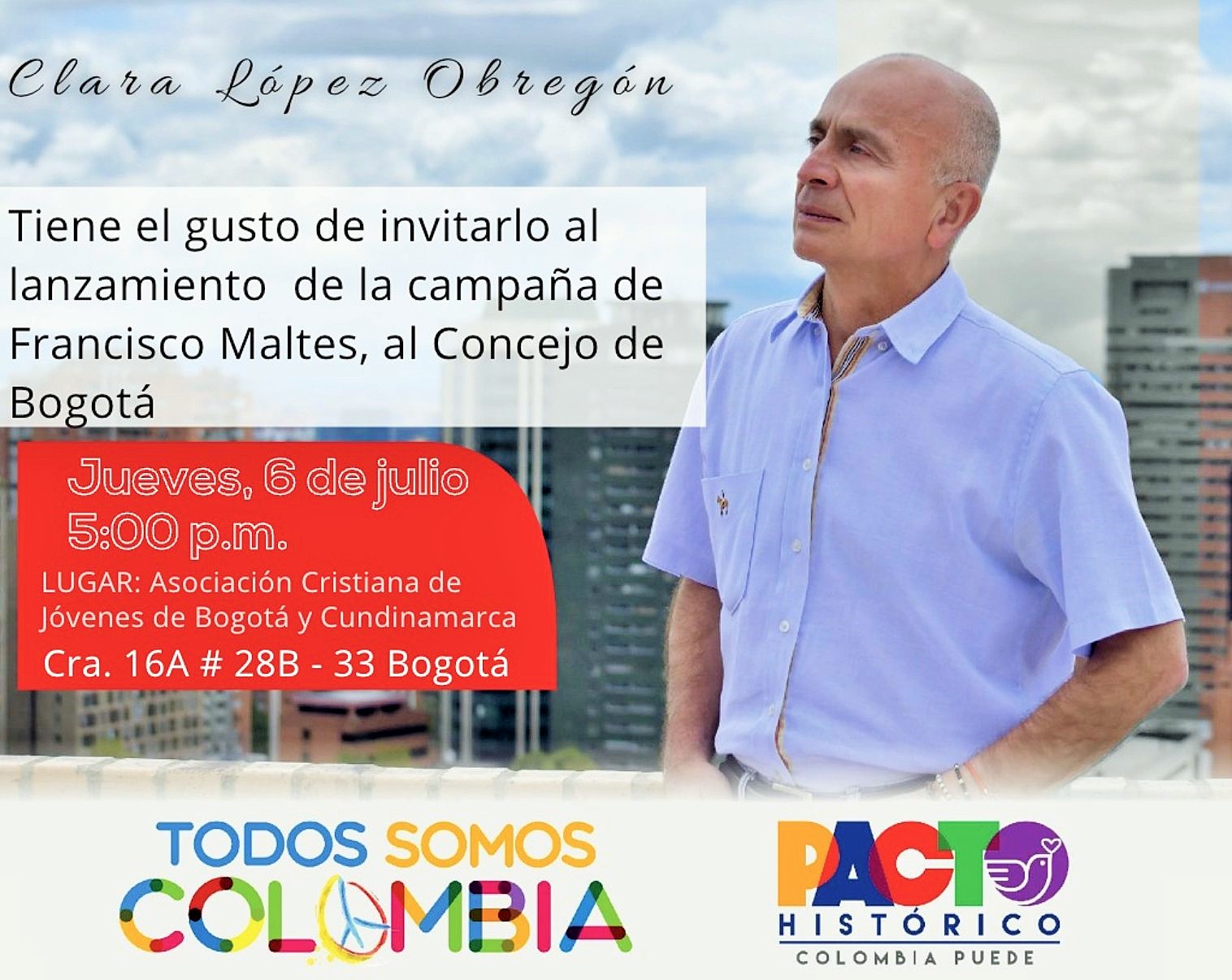 Maltés Tello es ampliamente conocido en diversos sectores sociales de la capital de la República puesto que su dilatada trayectoria como dirigente sindical da cuenta de su firme compromiso con las causas sociales por las que propugna el Pacto Histórico para elevar el nivel de vida de todos los colombianos.
