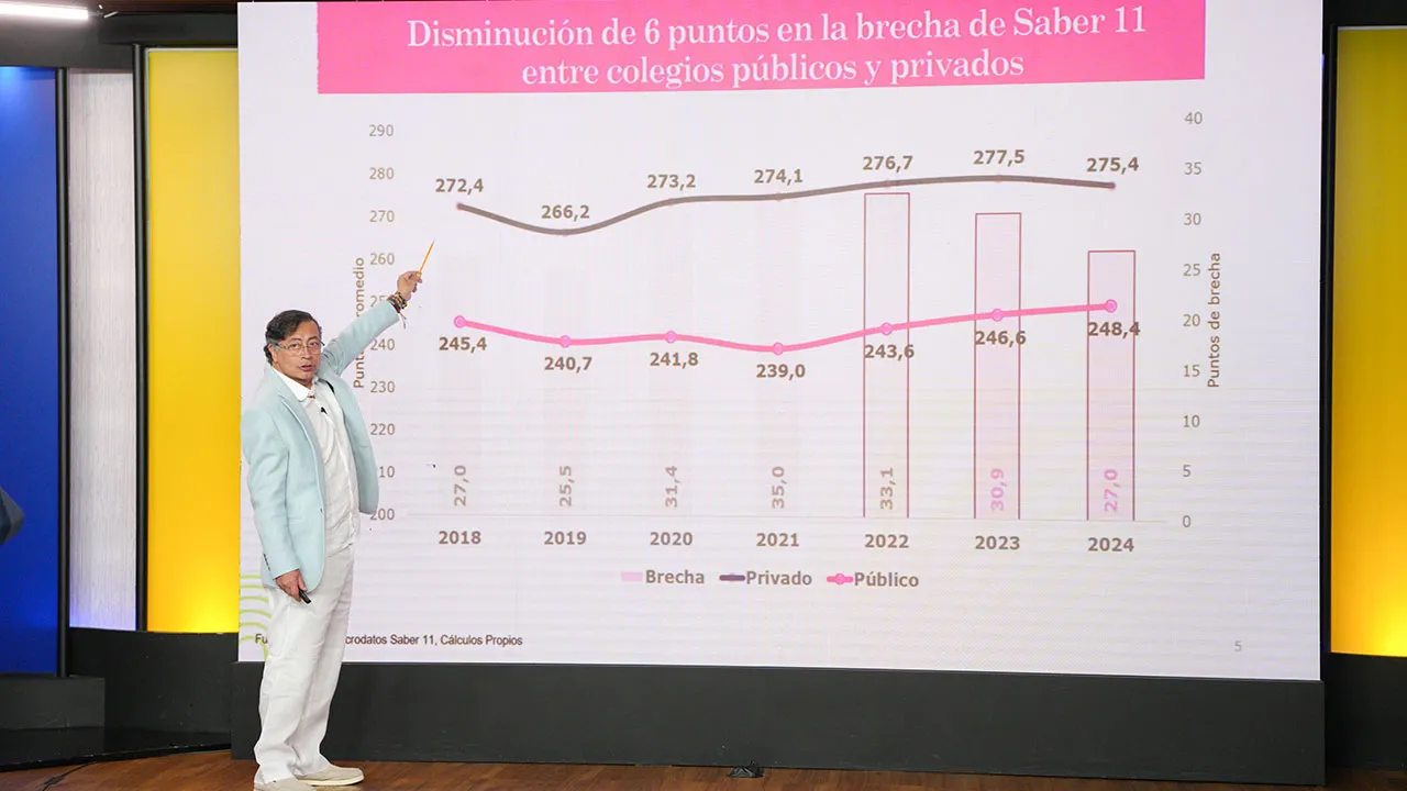 El presidente Petro explicó que, al comparar los resultados de la educación pública y privada, también hay avances en el promedio académico.