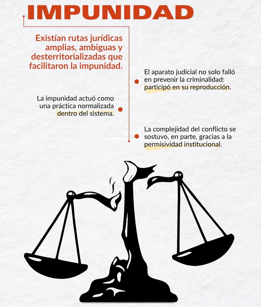 El libro problematiza el rol de la justicia transicional y los límites de los acuerdos de paz en la desarticulación efectiva de las redes paramilitares. Se argumenta que la fragmentación institucional, la falta de voluntad política y la cooptación de organismos de control han relegado a las víctimas a una búsqueda interminable de verdad y reparación, mientras se consolidan nuevas formas de violencia y despojo. Así, la impunidad no es solo el resultado de fallas individuales, sino de un entramado de intereses que dificulta la transformación del Estado y la consecución de una paz integral.
