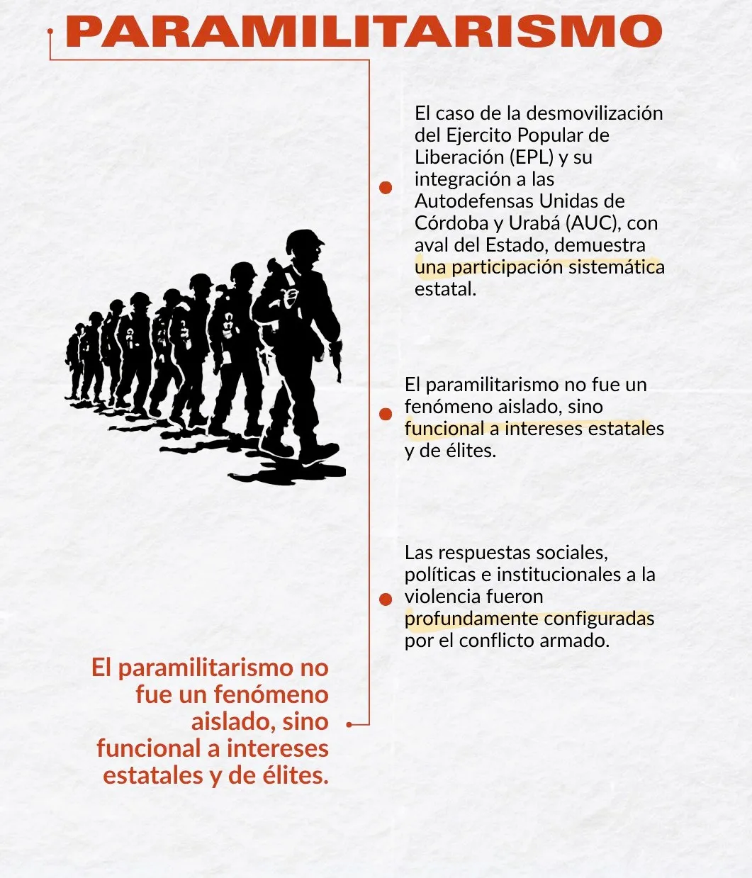 • Desmantelamiento efectivo de redes de apoyo: crear mecanismos interinstitucionales para identificar y sancionar a quienes, desde el Estado o el sector privado, faciliten la persistencia de estructuras paramilitares.
