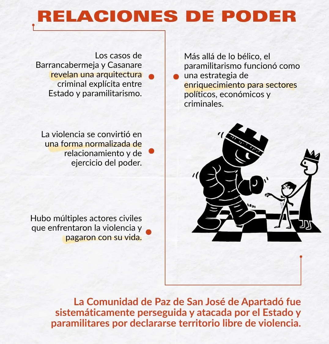 Desde una perspectiva política, ‘Justicia PARACOlombia’ desentraña la configuración de un campo de poder donde la justicia penal ha sido sistemáticamente condicionada por intereses económicos y políticos. El paramilitarismo, lejos de ser un fenómeno marginal o exclusivamente criminal, se presenta como una estrategia de acumulación y control social, articulada con sectores del Estado y del empresariado. Esta confluencia ha generado un régimen de impunidad funcional a la perpetuación del conflicto armado, donde las tentativas de esclarecimiento y sanción han enfrentado obstáculos estructurales.