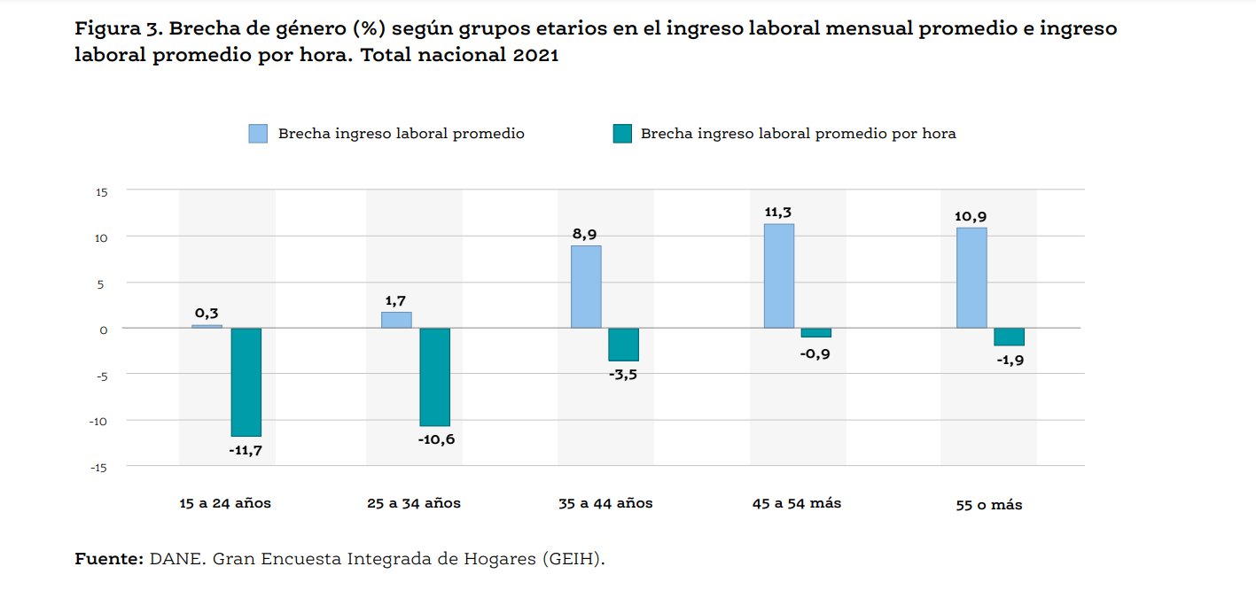Si bien la brecha salarial de género venía mejorando al pasar de 18,2 % en 2013 a 12,9 % en 2019, la pandemia retrotrajo a las mujeres a las labores de cuidado con el efecto de sustraerlas del mercado laboral (por fuera de la fuerza laboral: 46,9 % en 2019 y 51,9 % en 2020) y aumentó la tasa de desempleo (20,4 % mujeres frente a 12,7 % hombres).