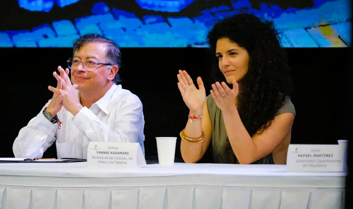 El presidente Gustavo Petro y la ministra de las Culturas, las Artes y los Saberes, Yannai Kadamani.