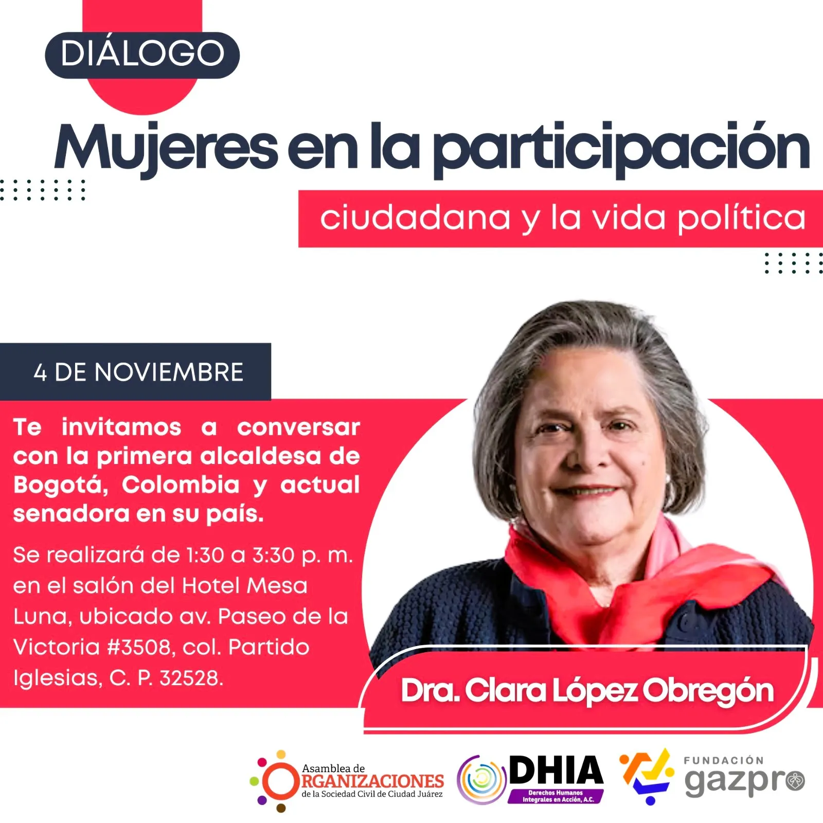 En los primeros días de noviembre, la senadora Clara López Obregón cumplirá una intensa jornada académica, política y social en las ciudades mexicanas de Chihuahua y Ciudad Juárez.