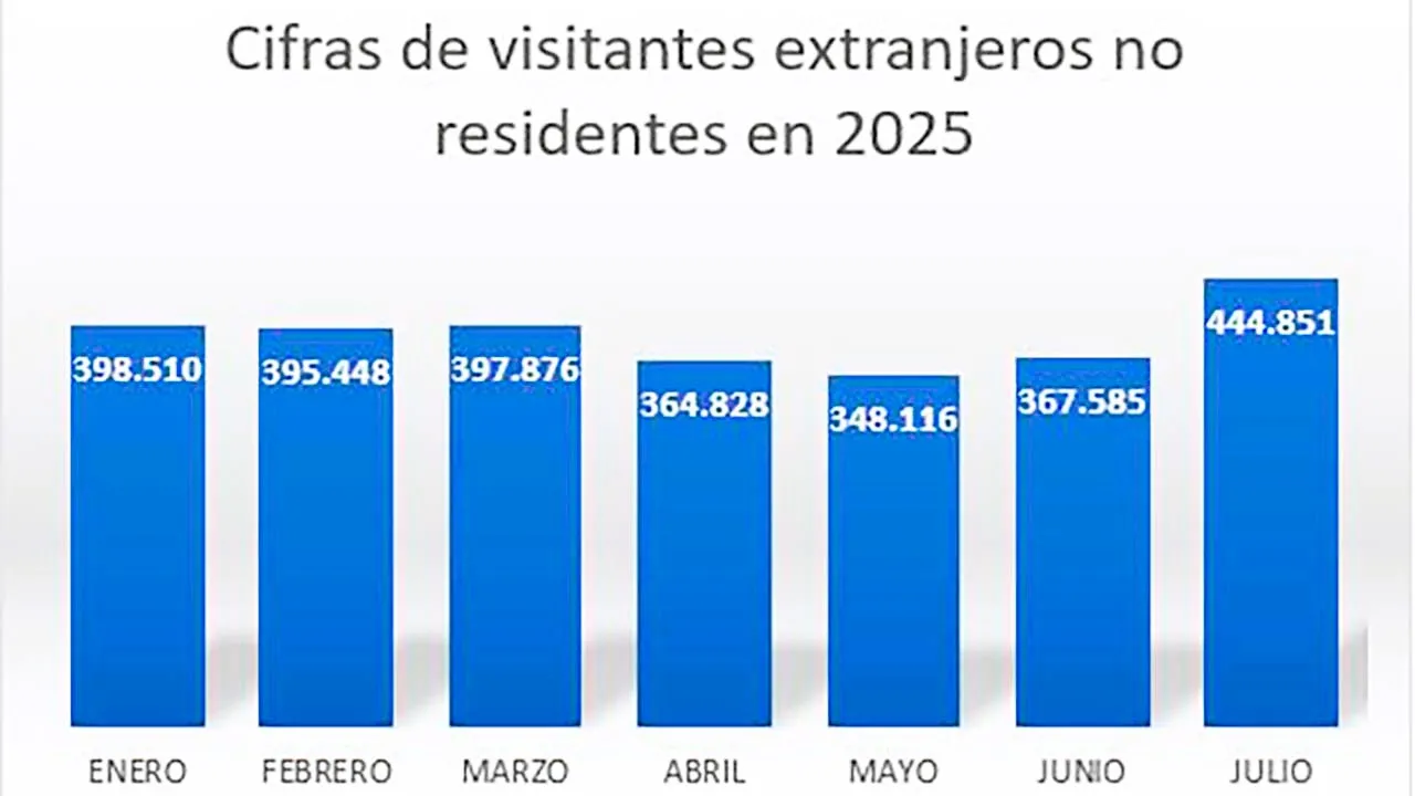 En comparación con julio de 2024, año récord en visitantes extranjeros, el número de turistas aumentó 6,8%, lo que permite prever que en 2025 se superarán las cifras de 2024.