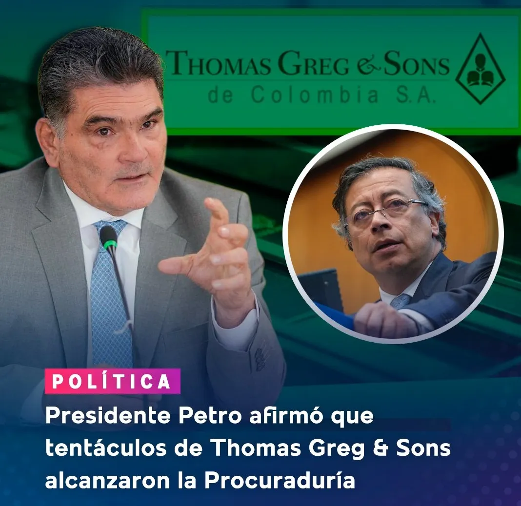 El presidente Gustavo Petro afirmó el pasado 5 de abril que informes de inteligencia revelan conversaciones entre De la Espriella y los hermanos Bautista (Gregorio, Fernando y Camilo), socios de Thomas Greg & Sons.