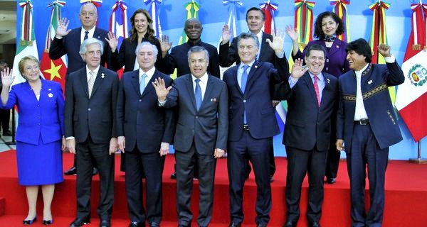 El recorrido de América Latina ha sido, en este punto, diacrónico. Desde la década anterior, la globalización neoliberal y sus efectos constituyeron uno de los blancos más notables de la artillería retórica de los gobiernos de centroizquierda. Según decía el entonces presidente brasileño, Luiz Inácio Lula da Silva: «La globalización no es un sinónimo ni un sustituto del desarrollo»12. Frente a este diagnóstico, la clave regional pasaba por edificar mecanismos que permitieran contrarrestar los efectos nocivos del proceso. Hoy, paradójicamente, existe un contraescenario. La mayoría de los gobiernos latinoamericanos reivindica las bondades de la globalización neoliberal y condena las pulsiones contra el libre comercio que emanan desde el Norte desarrollado. En su primer discurso ante la Asamblea General de la Organización de las Naciones Unidas (onu), Temer hizo una crítica efusiva del proteccionismo comercial13. Algo similar hizo el mandatario peruano, Pedro Pablo Kuczynski, cuando manifestó que «el proteccionismo tiene que ser derrotado»14. Macri y Peña Nieto no se quedaron atrás. Mientras que el presidente argentino expresó que «la globalización es una realidad que trae inmensas oportunidades que debemos aprovechar»15, el jefe de Estado azteca reivindicó a México como una nación abierta al libre comercio16.