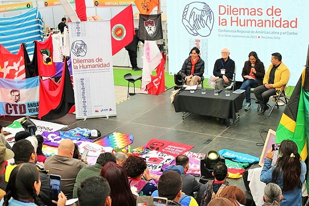 “Estamos en un momento de cambio profundo. En el que nuestra región latinoamericana y caribeña, una vez más, enfrenta el gran dilema de dos proyectos políticos”. Así inició la socióloga y politóloga peruana residente en Brasil, Mónica Bruckmann, el panel que dio apertura el pasado sábado 2 de septiembre, a la Conferencia Regional sobre los Dilemas de la Humanidad“la de la soberanía, de la posibilidad de pensar el futuro a partir de nuestras propias visiones y proyectos de desarrollo. Y la amenaza de movimientos de extrema derecha, profundamente violentos, retrógrados y reaccionarios”, introdujo Bruckmann.