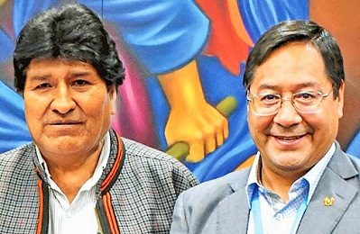 El expresidente Evo Morales y el mandatario boliviano Luis Arce.