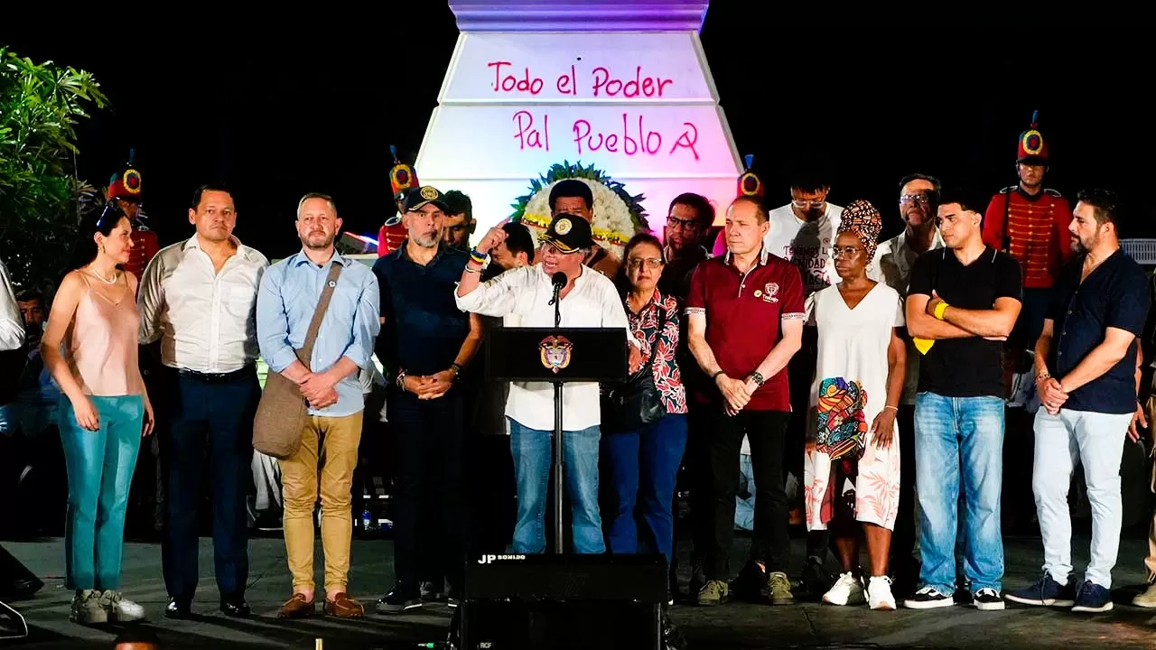 “Si me van a echar por ello, estalla la revolución en Colombia. No vamos a arrodillarnos. No hemos pedido nada que no sea normal en el mundo. No estamos siendo exagerados ni radicales. No estoy pidiendo el socialismo, aunque quisiera. Aquí no estamos expropiando. Aquí solo queremos la dignidad del pueblo trabajador, la dignidad del microempresario, la dignidad de la mujer, la dignidad del campesino, la dignidad del joven en los barrios populares y en la vereda. Solo eso, señores de la oligarquía. No nos obliguen a lo imposible porque haremos lo imposible. Colombia es capaz de hacerlo, porque quiere abandonar los cien años de soledad. No nos obliguen, no nos reten, no nos amenacen más”, concluyó el Presidente de la República.