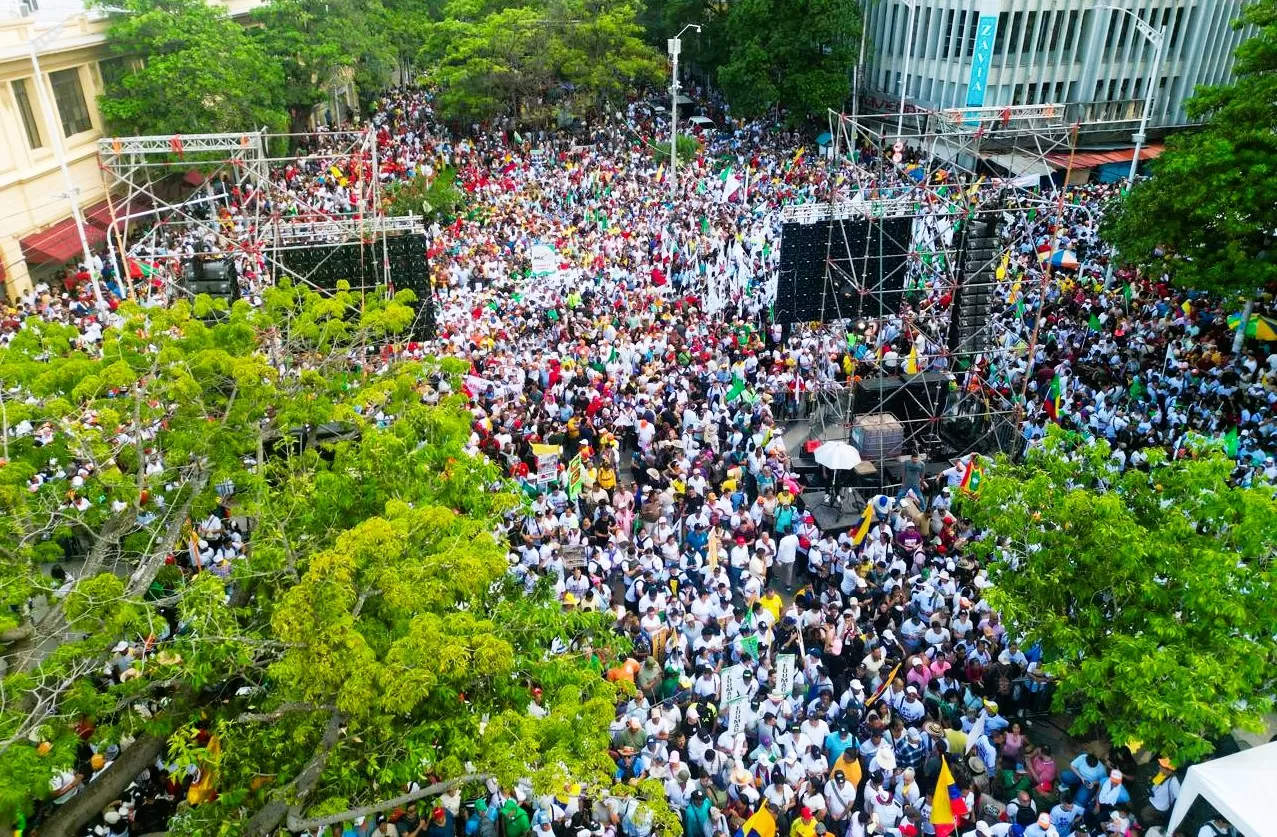 La histórica manifestación se realizó un día después de que el Gobierno nacional radicara de nuevo la Consulta Popular en el Senado, esta vez con 16 preguntas: las 12 inicialmente presentadas en materia laboral y otros cuatro interrogantes sobre el sector salud.