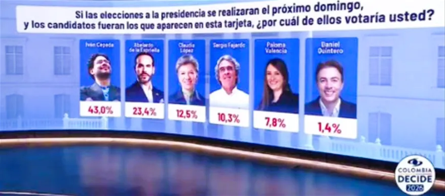 En efecto, en la presentación televisiva, se prioriza la mención de Daniel Quintero (con menor intención de voto) sobre Clara López, lo que constituye una distorsión informativa y un sesgo editorial, pues altera el orden real de preferencia ciudadana y minimiza la relevancia de una aspiración con mayor respaldo electoral.
