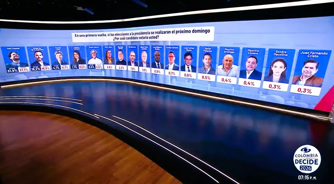 La cobertura de Noticias Caracol sobre la encuesta Invamer del 25 de febrero de 2026 evidencia una falta de rigor profesional y sesgo informativo al omitir a Clara López Obregón en favor de Daniel Quintero, pese a que la primera lo duplica en intención de voto.