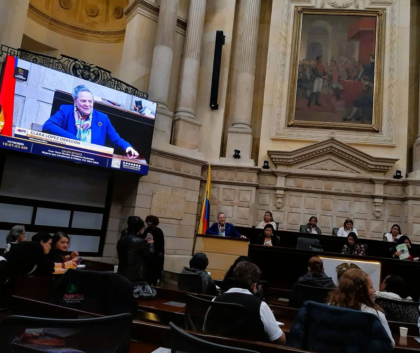 La congresista inició su intervención resaltando el papel fundamental que desempeñaron las mujeres rurales en la época de la independencia de Colombia. Subrayó la fortaleza y resiliencia que han caracterizado a la mujer colombiana a lo largo de la historia, especialmente en contextos de adversidad como el conflicto armado interno. Este reconocimiento histórico sirvió como contexto para valorar la importancia actual de la participación femenina en la transformación política y social del país.