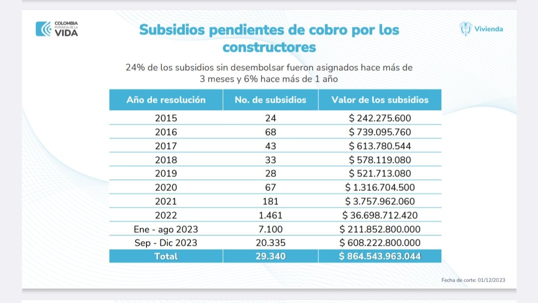 ¿Qué se recibió cuando asumió el Gobierno de Gustavo Petro? Una gran cantidad de subsidios sin desembolsar que se han desembolsado. Este gobierno ha hecho una asignación mucho mayor de subsidios que los gobiernos anteriores.