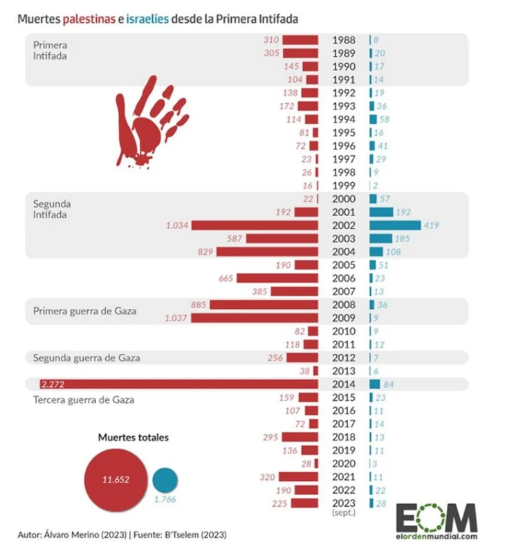 De ñapa les ofrezco el mapa de Palestina destrozado por Israel y las estadísticas de los masacrados en el conflicto creado por la usurpación sionista: