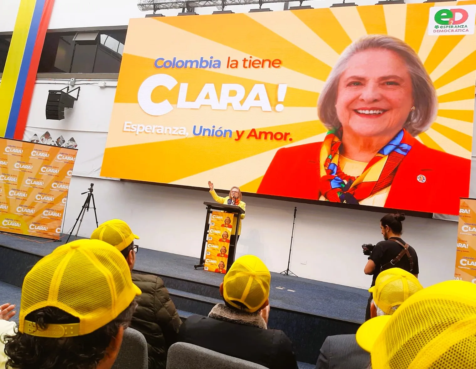 El acto contó con la presencia destacada de su fórmula vicepresidencial, la abogada, defensora de derechos humanos, catedrática universitaria y exveedora distrital María Consuelo del Río Mantilla, y del reconocido gestor de paz Álvaro Villarraga Sarmiento, presidente del Partido Esperanza Democrática. Ambos con intervenciones que reforzaron el mensaje central de la candidatura.