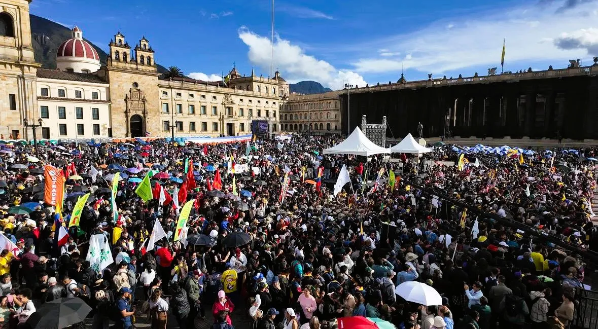 El presidente Petro habló ante miles de lideresas y líderes sociales y comunales, representaciones de los diferentes sindicatos gremiales, organizaciones de defensa laboral, trabajadoras y trabajadores, centrales obreras, comunidad educativa, campesinos, vendedores, ambulantes, emprendedores, madres cabeza de hogar, personas con diversidad funcional y en situación de discapacidad, habitantes de calle, personas de la tercera edad, profesionales de la salud, comunidad LGBTIQ+, pueblos indígenas, pueblos afrodescendientes y miembros de su gabinete en pleno.