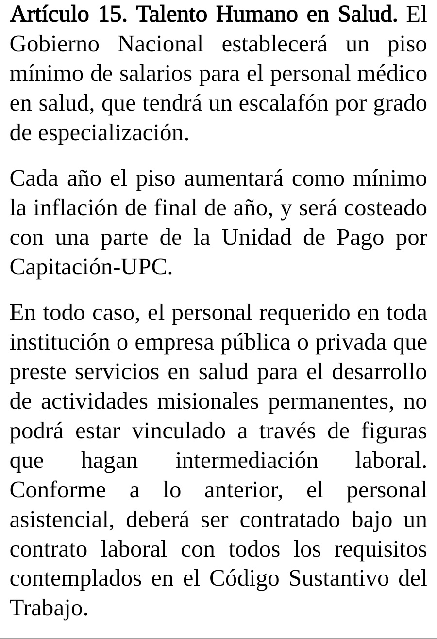 Además, plantea un piso mínimo para el salario de una parte del personal que trabaja en el sistema de salud, lo que resulta claramente insuficiente ante la grave crisis que han manifestado en el sector.