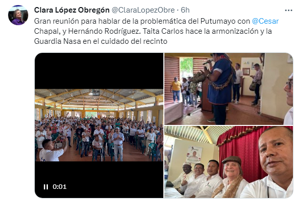 Con el propósito de auspiciar y apoyar el proceso de unidad de los sectores alternativos del Putumayo que determinaron congregarse en torno de la candidatura del abogado César Chapal a la Gobernación de este departamento, la senadora del Pacto Histórico estuvo este viernes 20 de octubre en la ciudad de Puerto Asís.