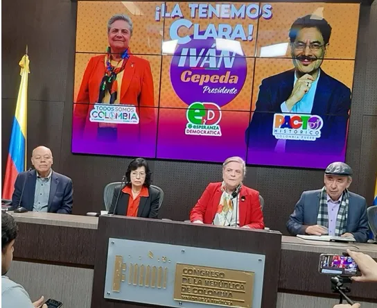 En la mañana de este miércoles 8 de abril, la senadora Clara López Obregón, lideresa del movimiento político Todos Somos Colombia (TSC), ofreció una rueda de prensa en la que detalló el alcance del acuerdo programático alcanzado con Iván Cepeda Castro, candidato presidencial del Pacto Histórico. El evento contó con la presencia de figuras clave como la jurista María Cunsuelo del Río, su exfórmula vicepresidencial; Álvaro Villarraga, presidente del partido Esperanza Democrática que avaló su aspiración presidencial; y Oscar Gutiérrez Guáqueta, vocero de TSC.