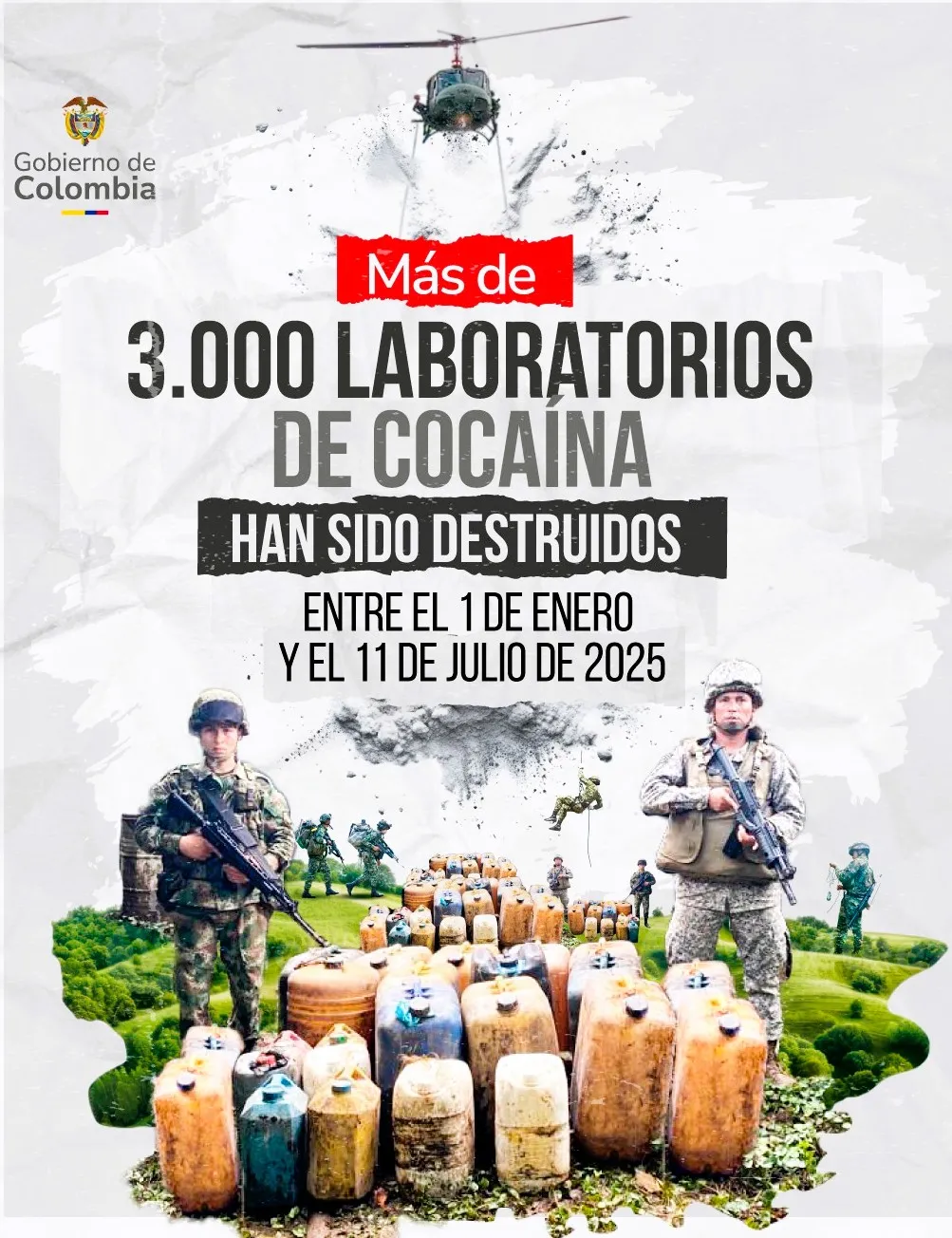 • Se han destruido 5.261 laboratorios y capturado 183 extraditables, cifras superiores a las de los cinco gobiernos anteriores.