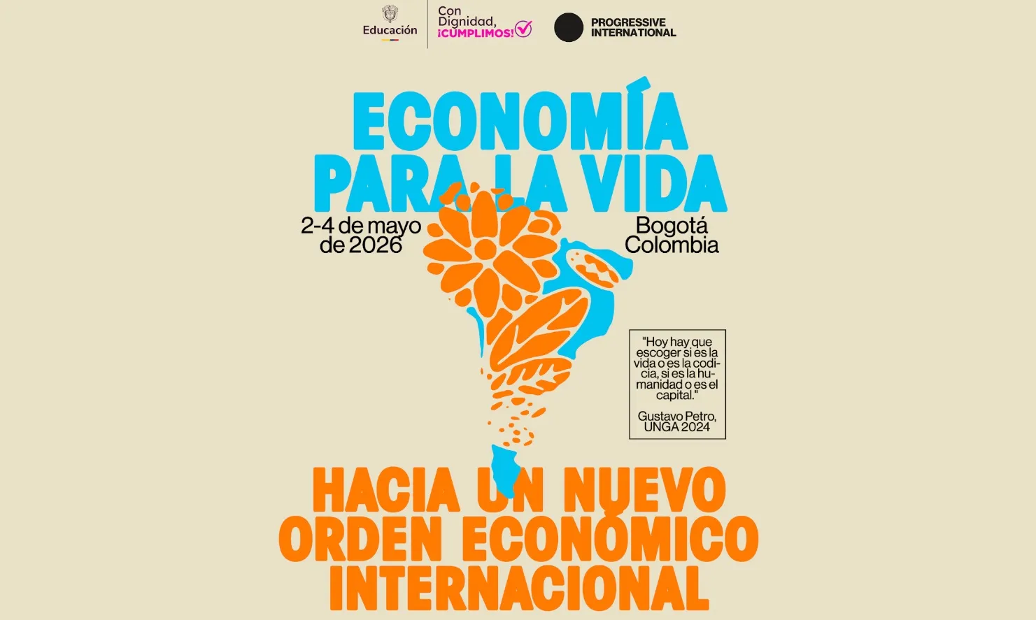 Entre el sábado 2 y el lunes 4 de mayo se realizará en Bogotá el Encuentro ‘Economía para la Vida: hacia un Nuevo Orden Económico Internacional’ organizado por el Gobierno colombiano, la Internacional Progresista y el Centro de Pensamiento Vida, el cual reúne a destacadas figuras intelectuales y dirigentes políticos y sociales de varios países que plantearán alternativas socioeconómicas para tratar de superar el actual momento crítico que atraviesa la humanidad que se debate entre el alto grado de belicismo y una severa crisis civilizatoria que amenaza la vida en el planeta.
