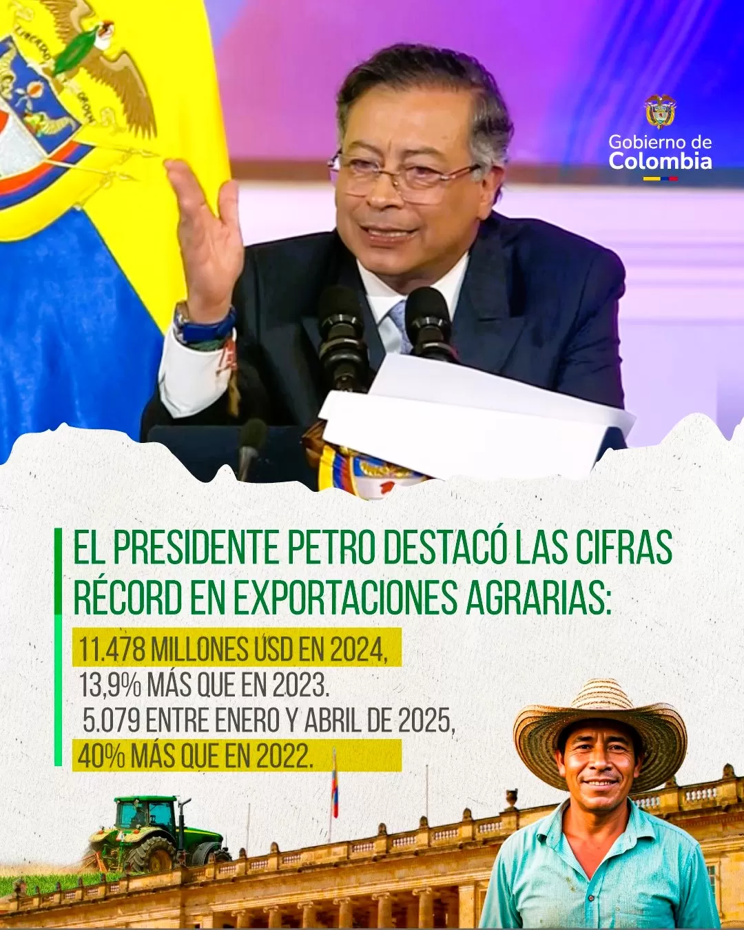 En cuanto a los resultados en su política agraria, el mandatario resaltó: “Entregamos una política agraria tal (aún hay que discutir otros y en la Corte se cayeron algunos criterios) que otra vez el sector agrario empieza a ser predominante en muchas regiones. Hoy, en este mes, la agricultura creció 7,1 %”.