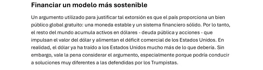 Plantea además la necesidad de que EE.UU. requiere financiar un modelo económico más sostenible.