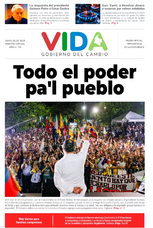 En la más reciente edición del Periódico Vida, órgano oficial de la Presidencia de la República se analiza el sugerente proceso sociopolítico que vive el país en torno a la Consulta Popular para aprobar las reformas sociales y la serie de frenos que busca poner la oposición, caracterizada por defender el statu quo y el malhadado modelo económico neoliberal.